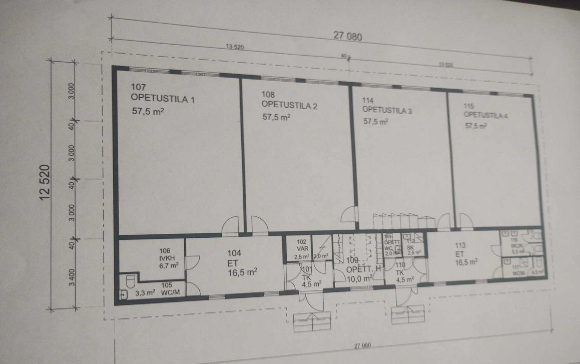 Yhden opetustilan koko 57,5m3