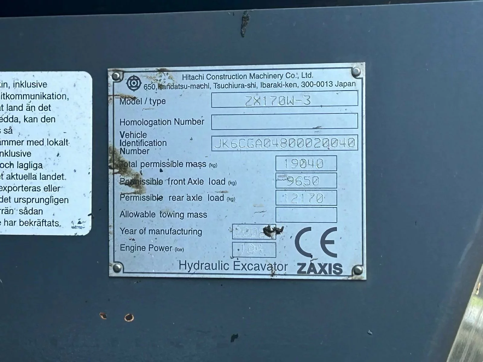Muu teaveHitachi ZX 170W-3