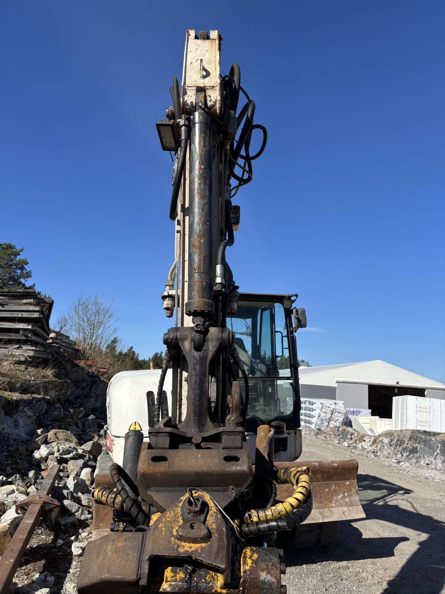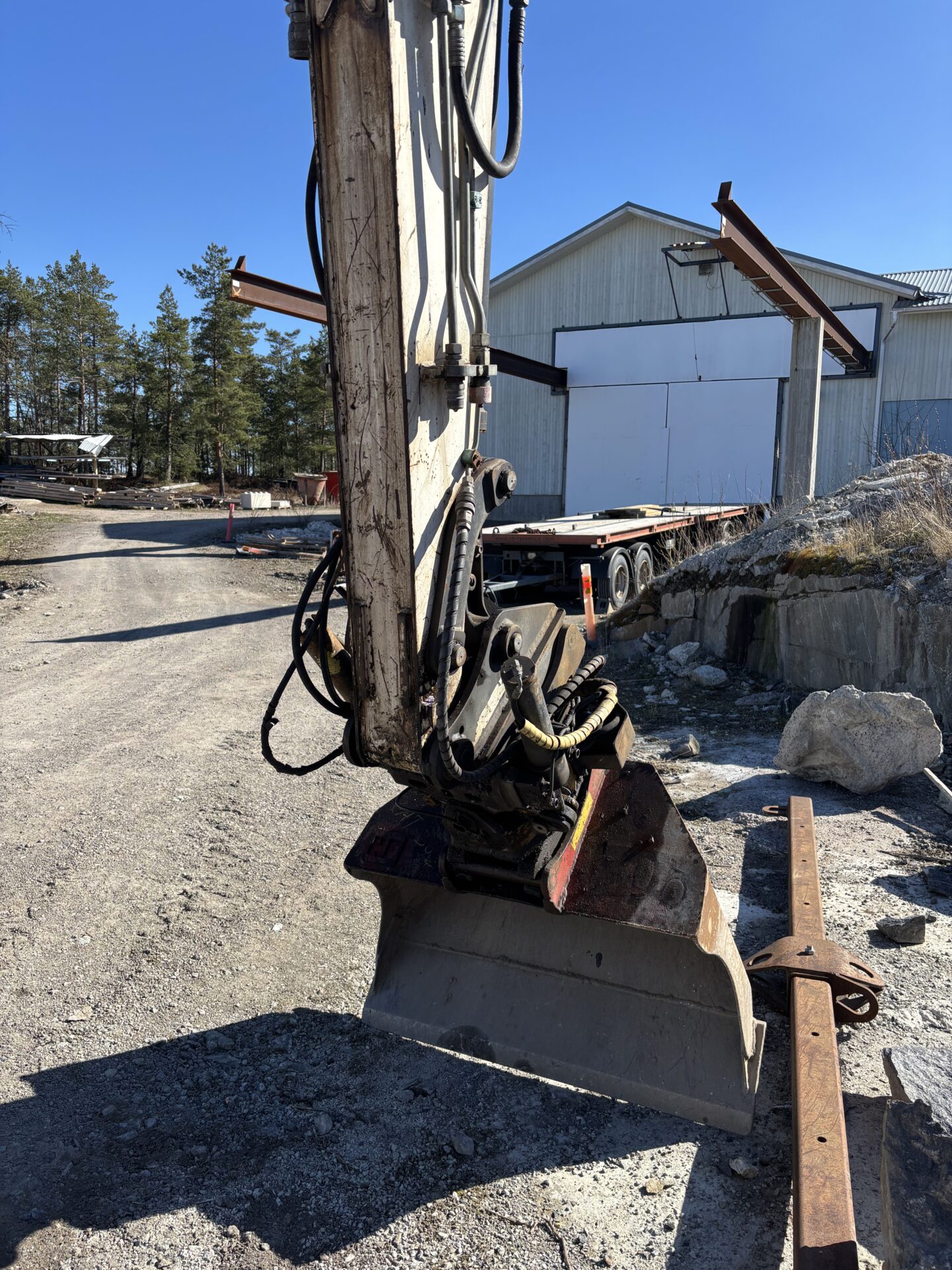 Koneessa kiinni Engcon pyörittäjä, joten kätevä kaivella vaikka talonvierustaan salaojia