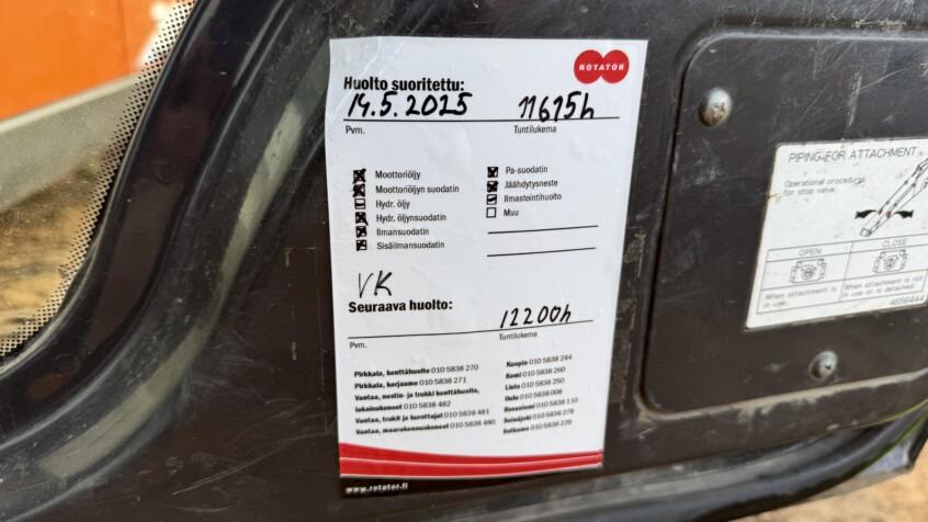 Kone on täysin varusteltu vaativiinkin projekteihin sekä huollettu ja korjattu esimerkillisesti mm. täydellinen moottoriremontti sekä uusi Rototilt R9 2020.
