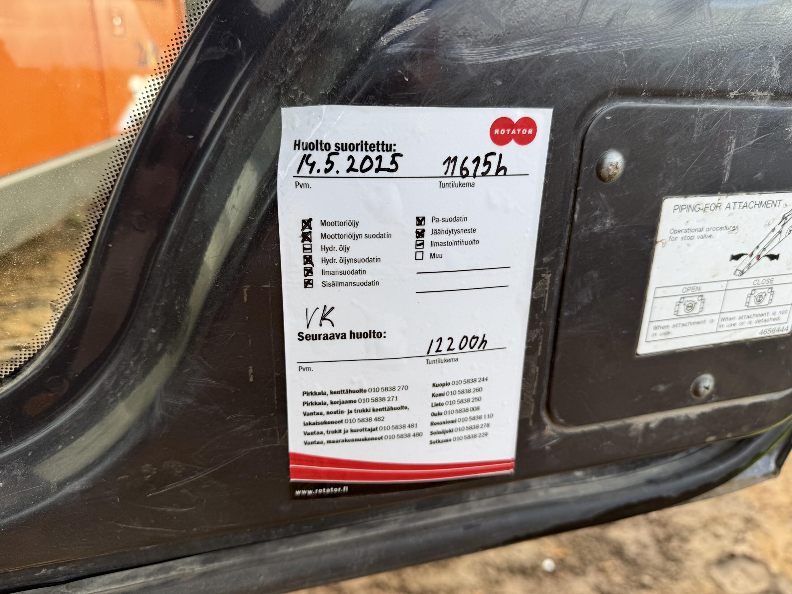 *Dokumentoitu huoltohistoria Rotatorilta