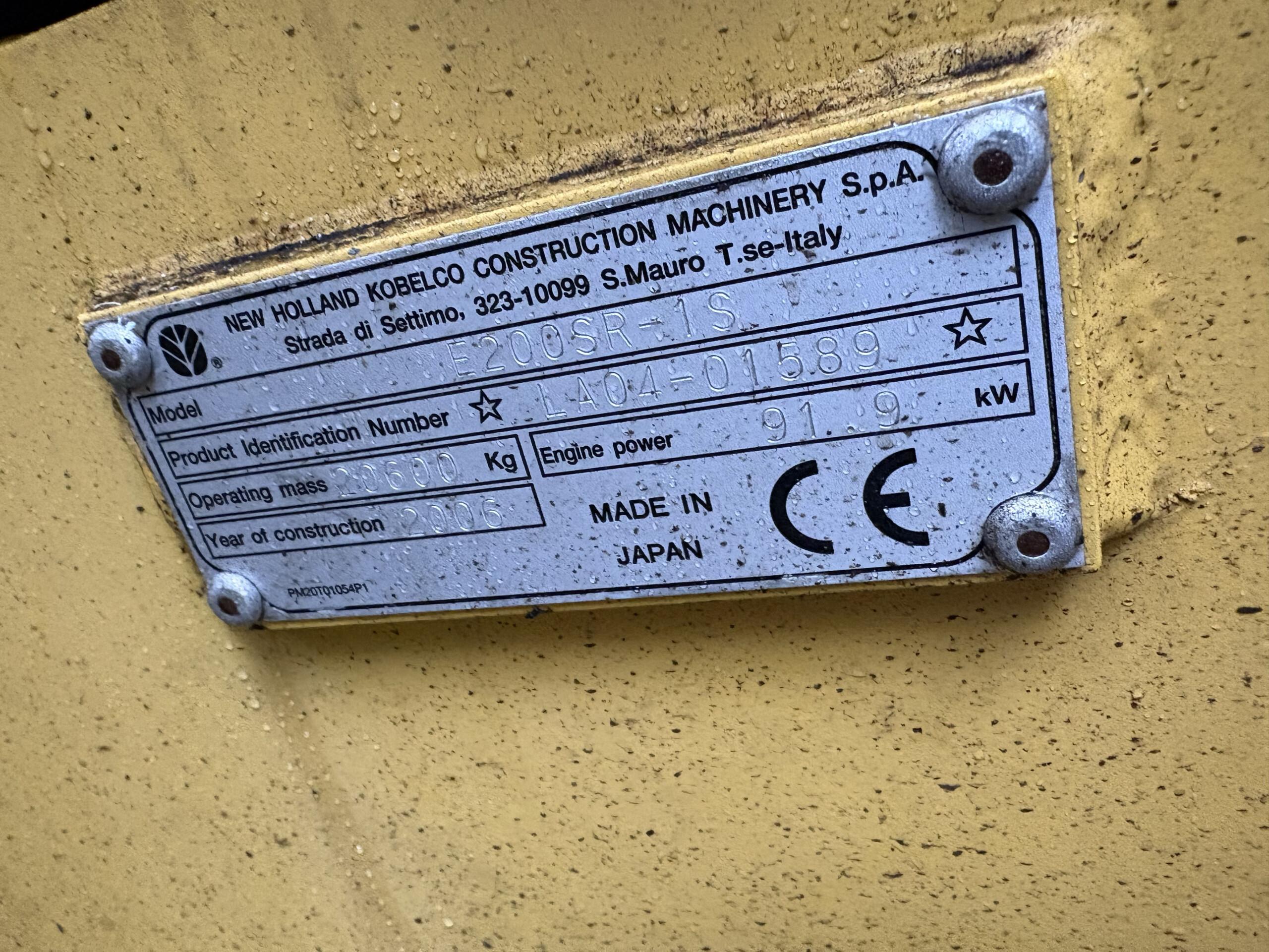 Muu teaveNew Holland Kobelco E200SR-1S
