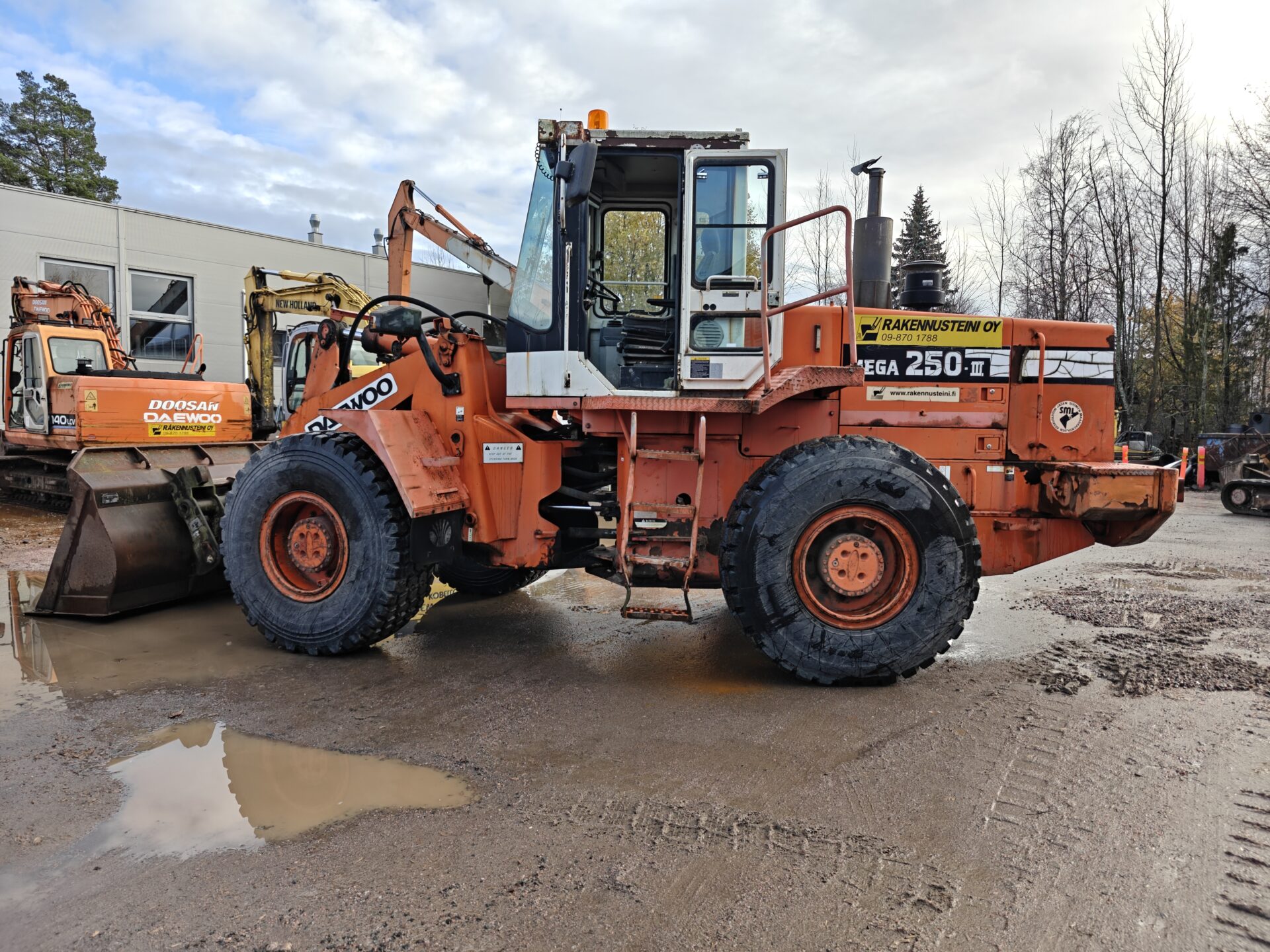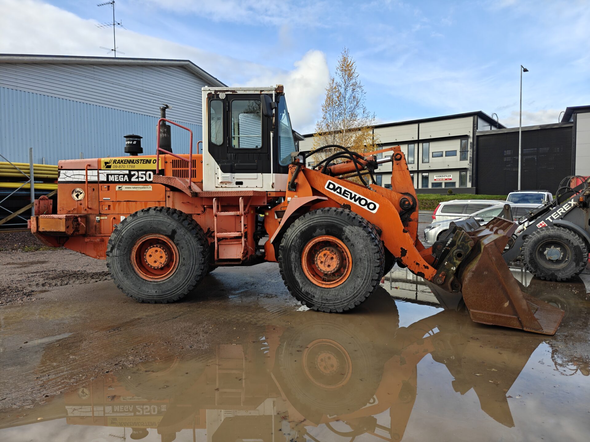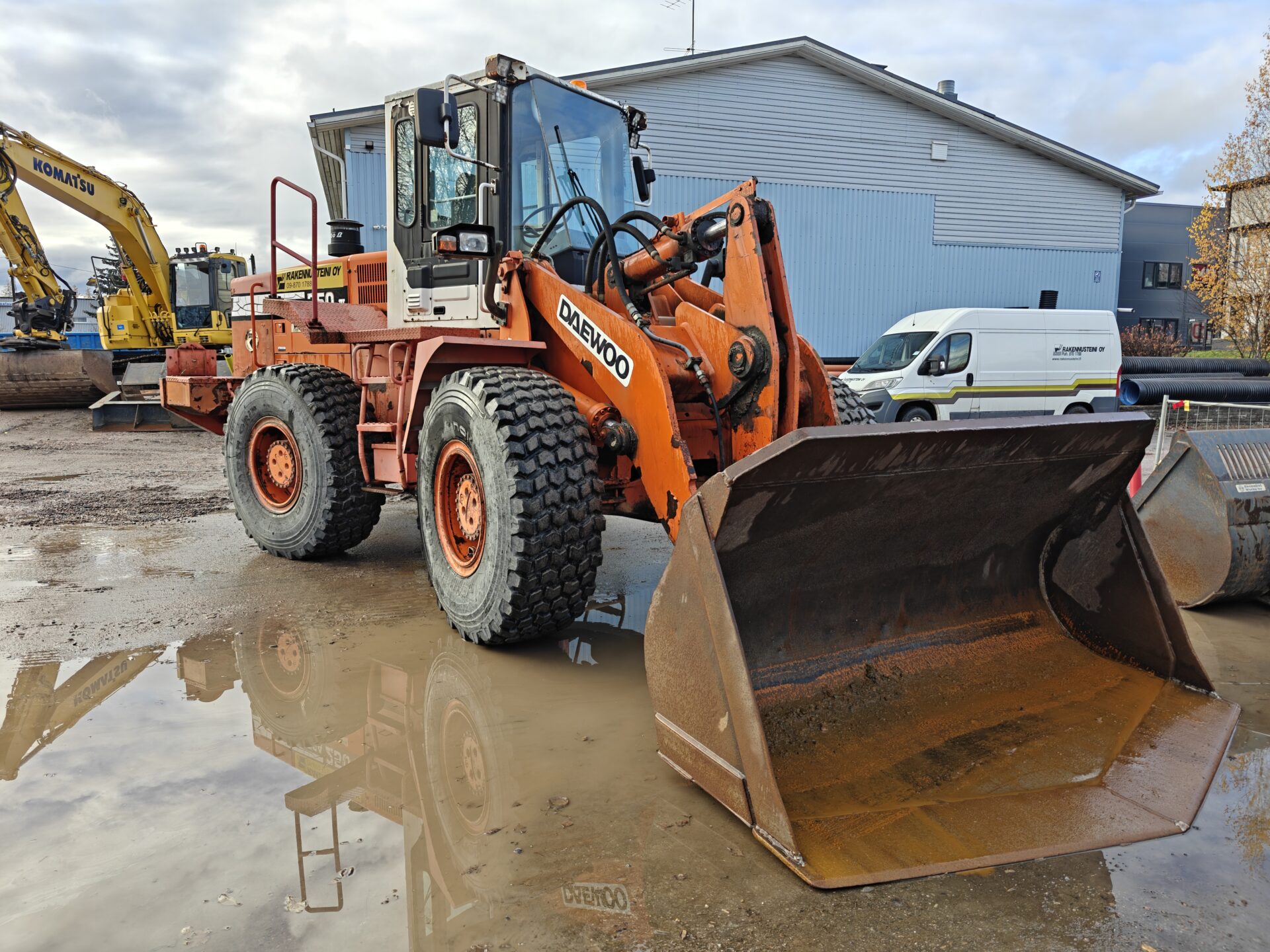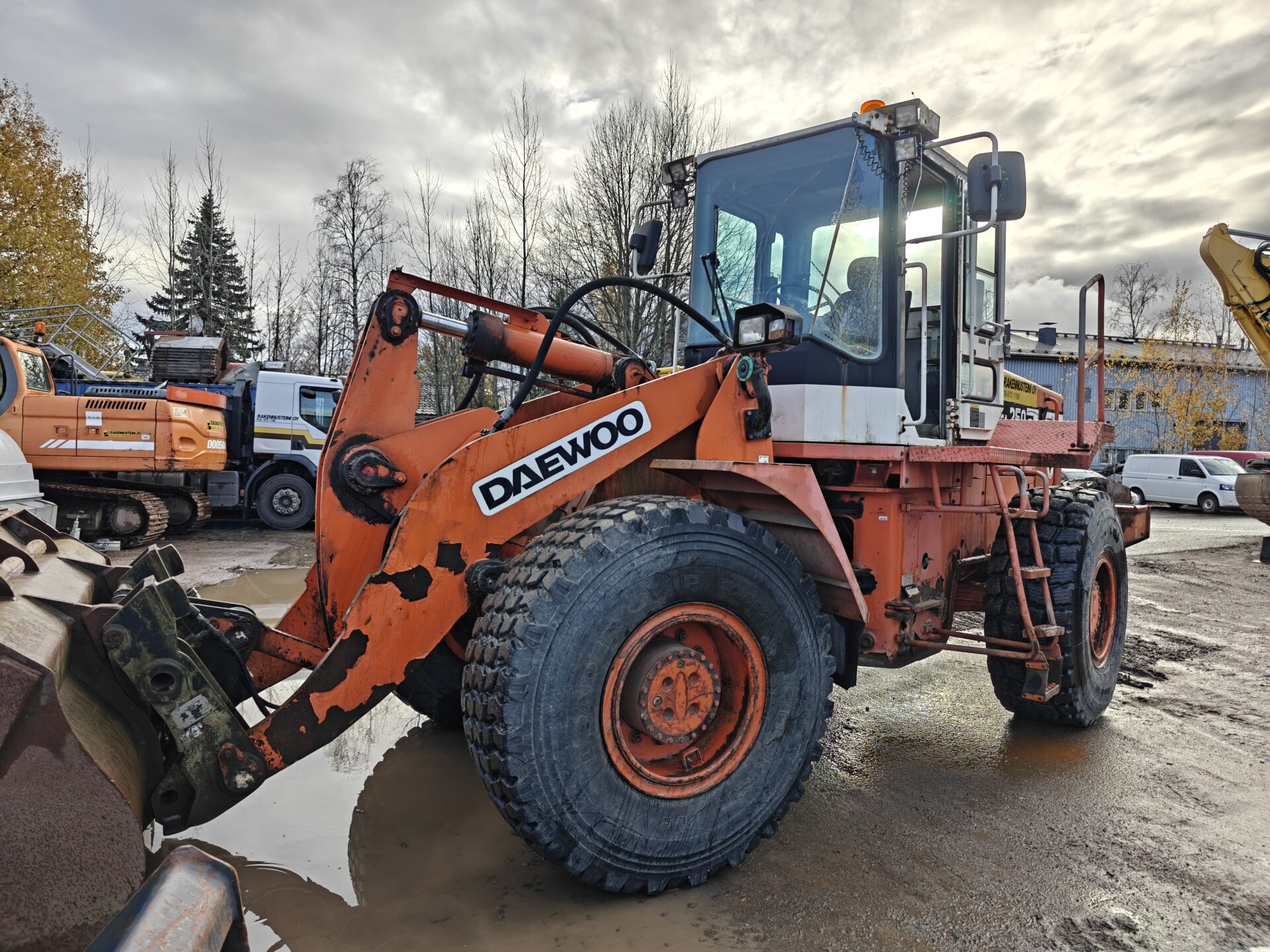 Käyttöä nähnyt Daewoon pyöräkone valmiina seuraaviin urakkoihin.