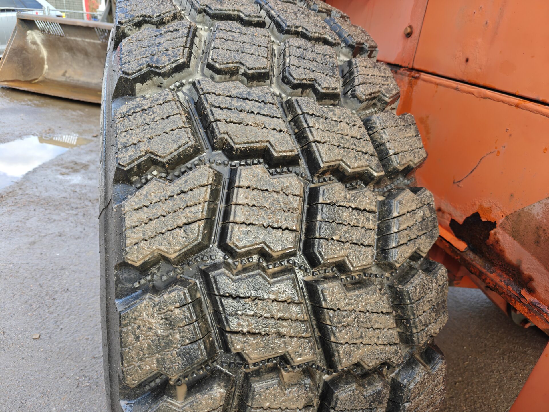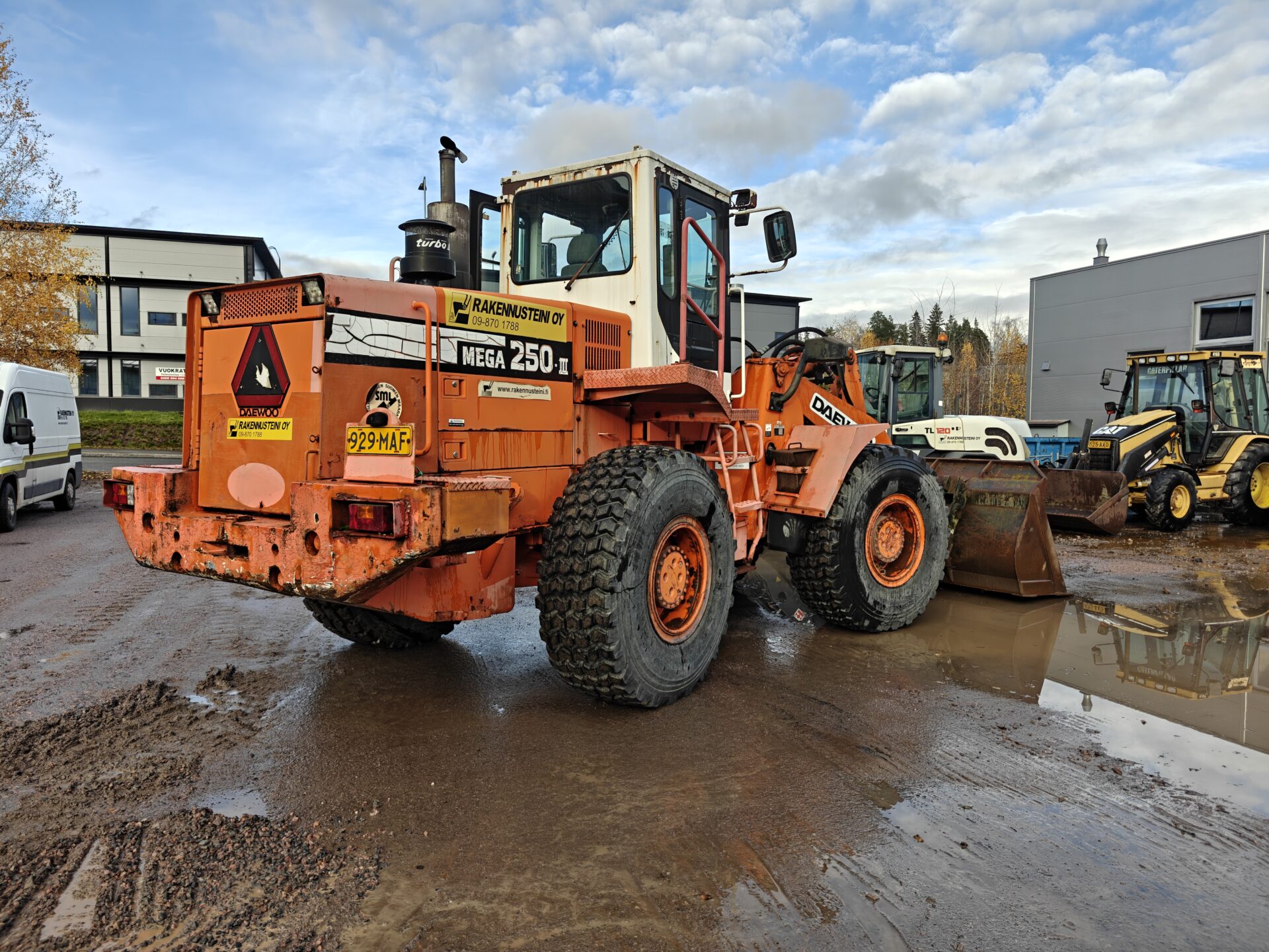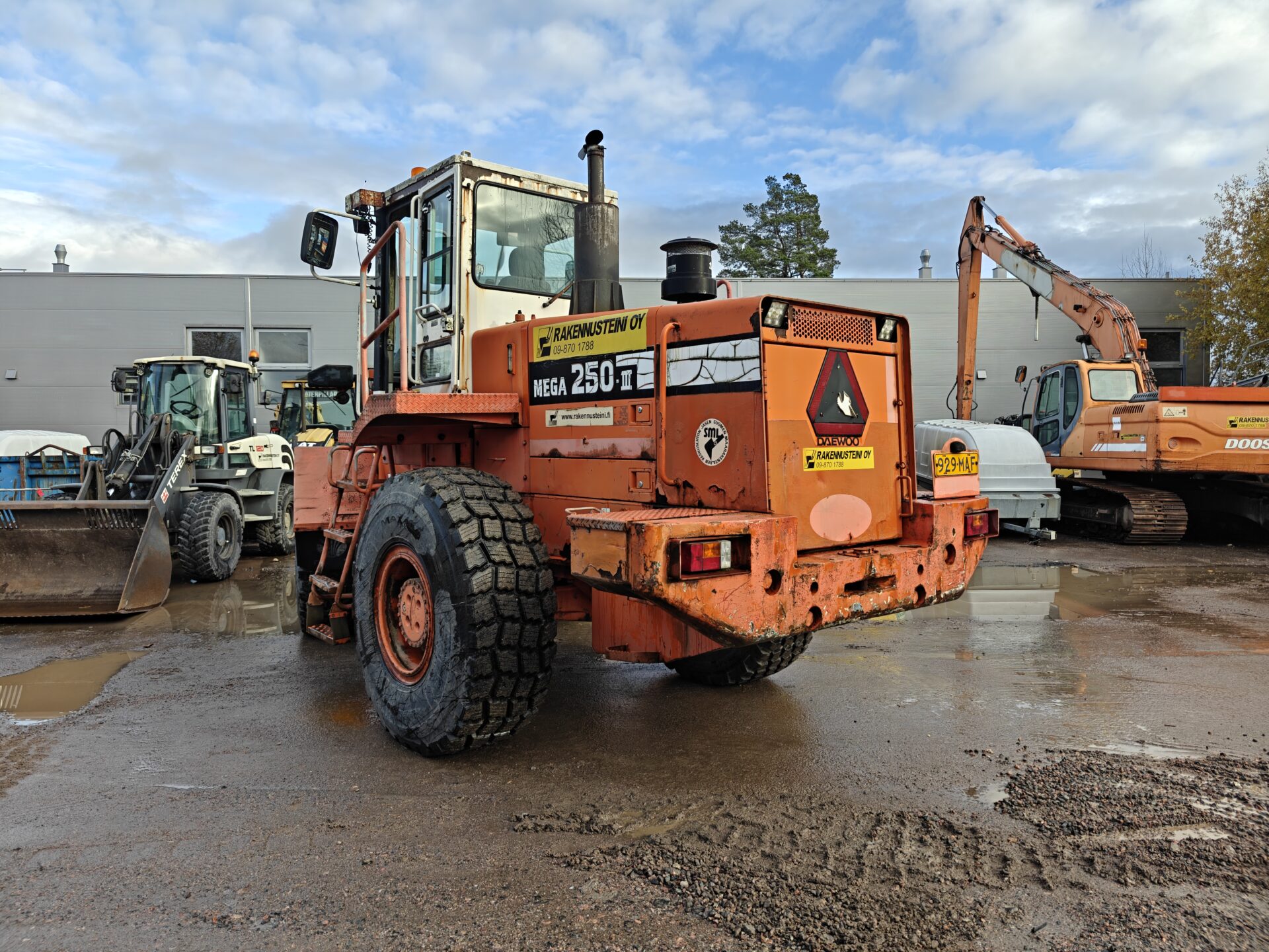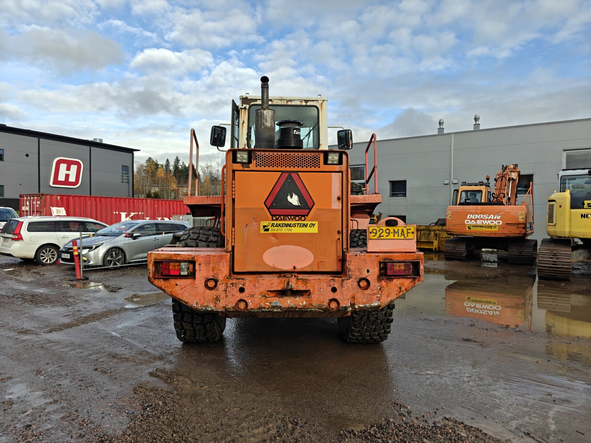 Käyttöä nähnyt Daewoon pyöräkone valmiina seuraaviin urakkoihin.