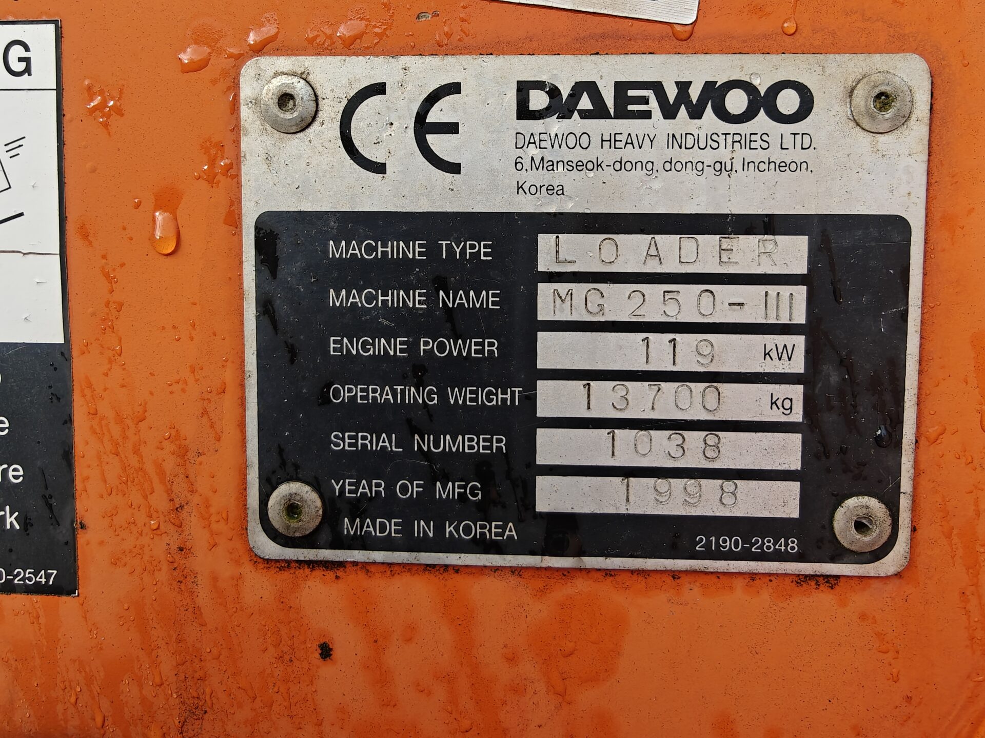 Muu teaveDaewoo MEGA-MG250-III-4X4/302 pyöräkuormaaja