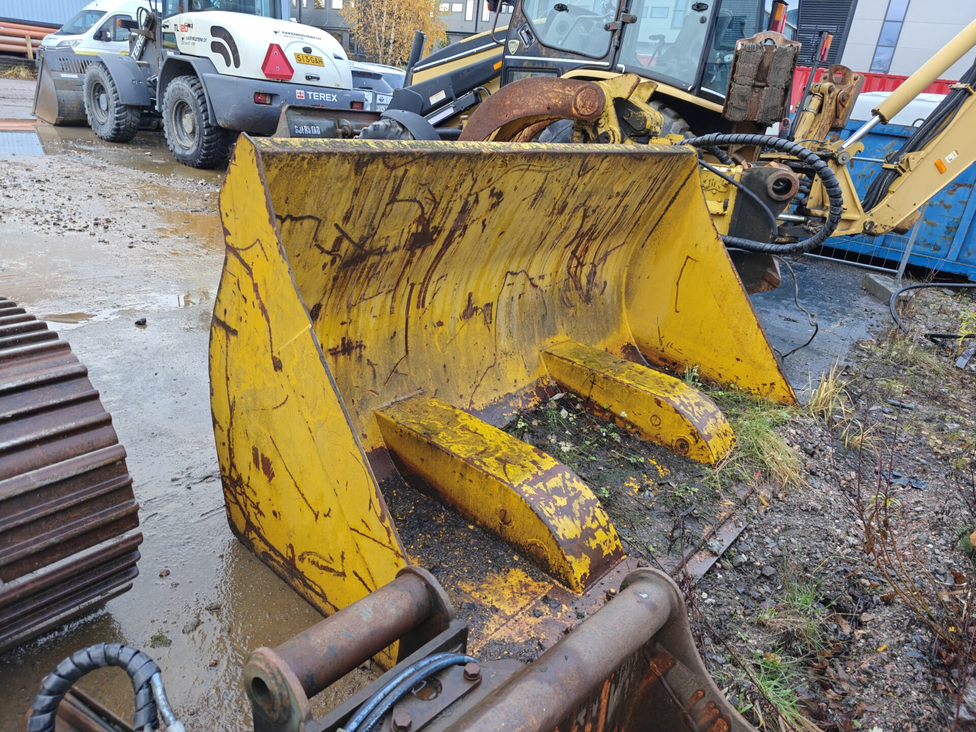 Kone myydään kauhan kanssa.