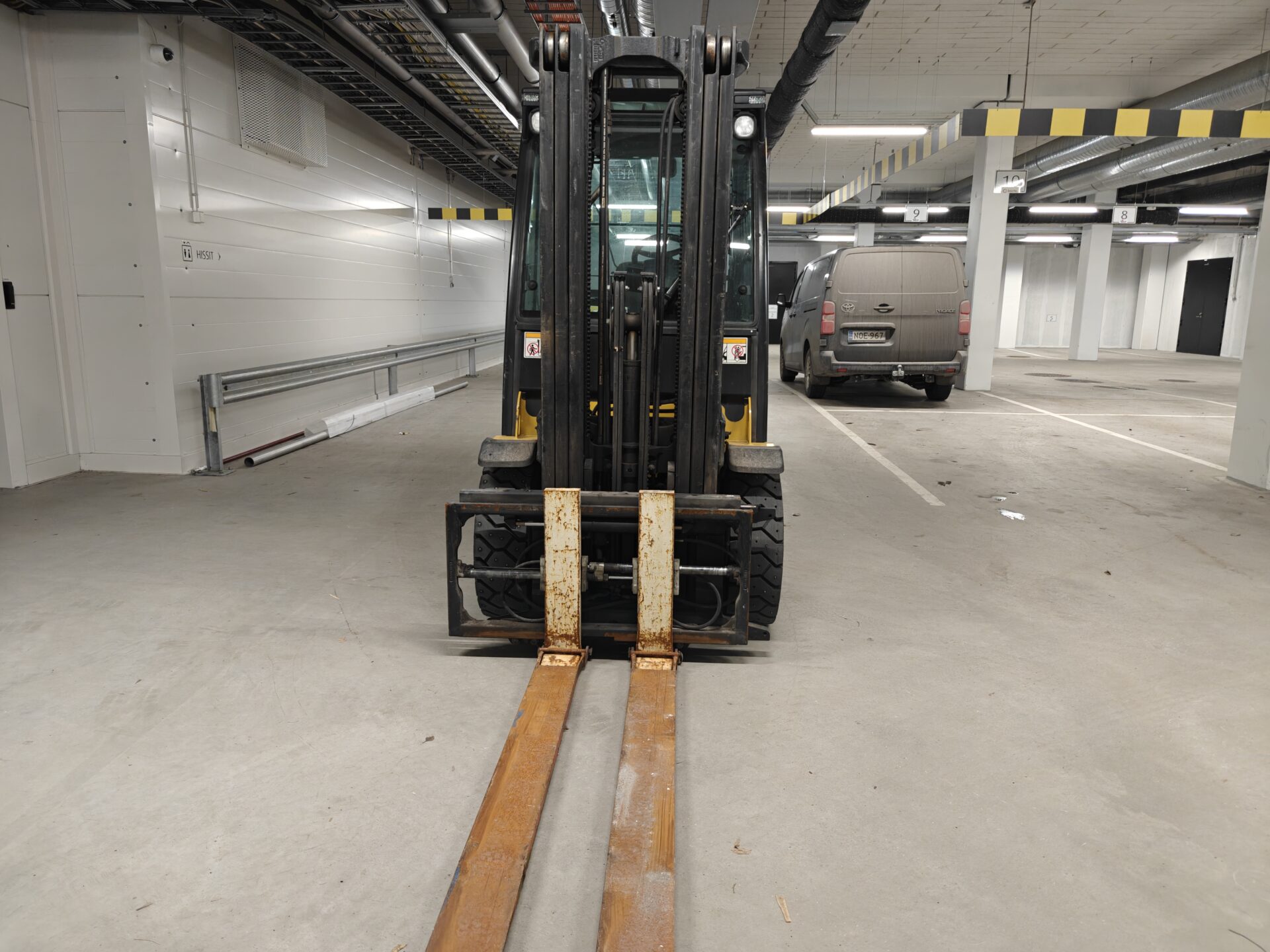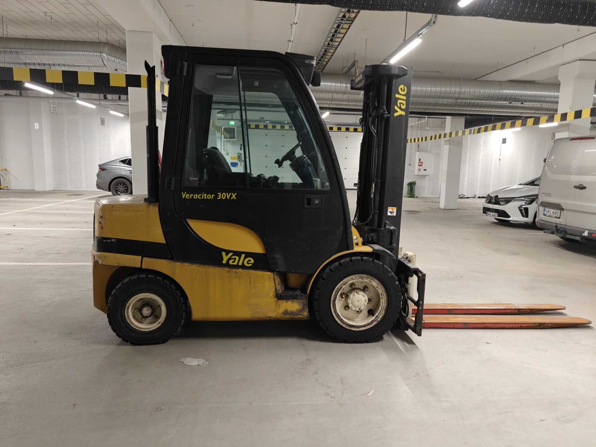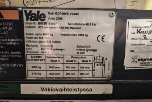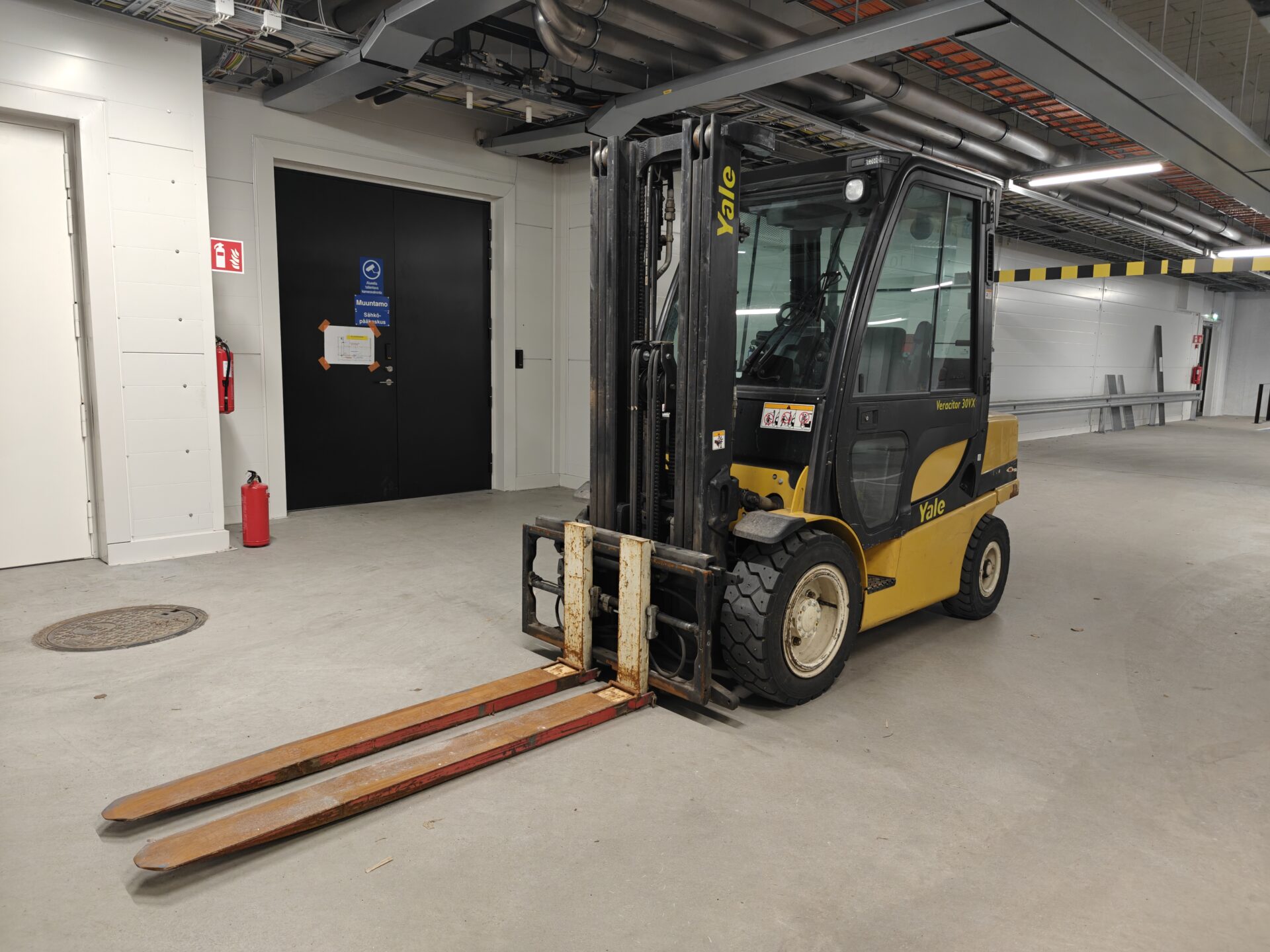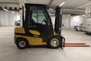 Todella pienillä tunneilla oleva ja juuri huollettu Yalen dieseltrukki.