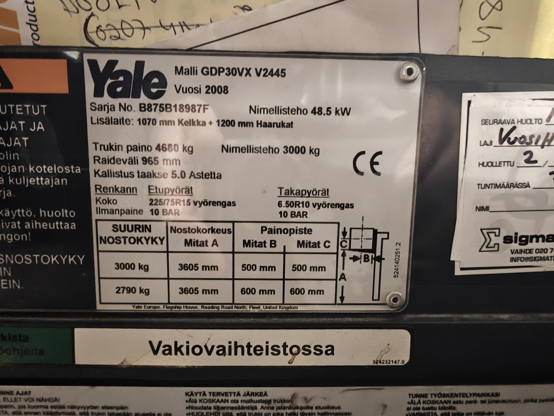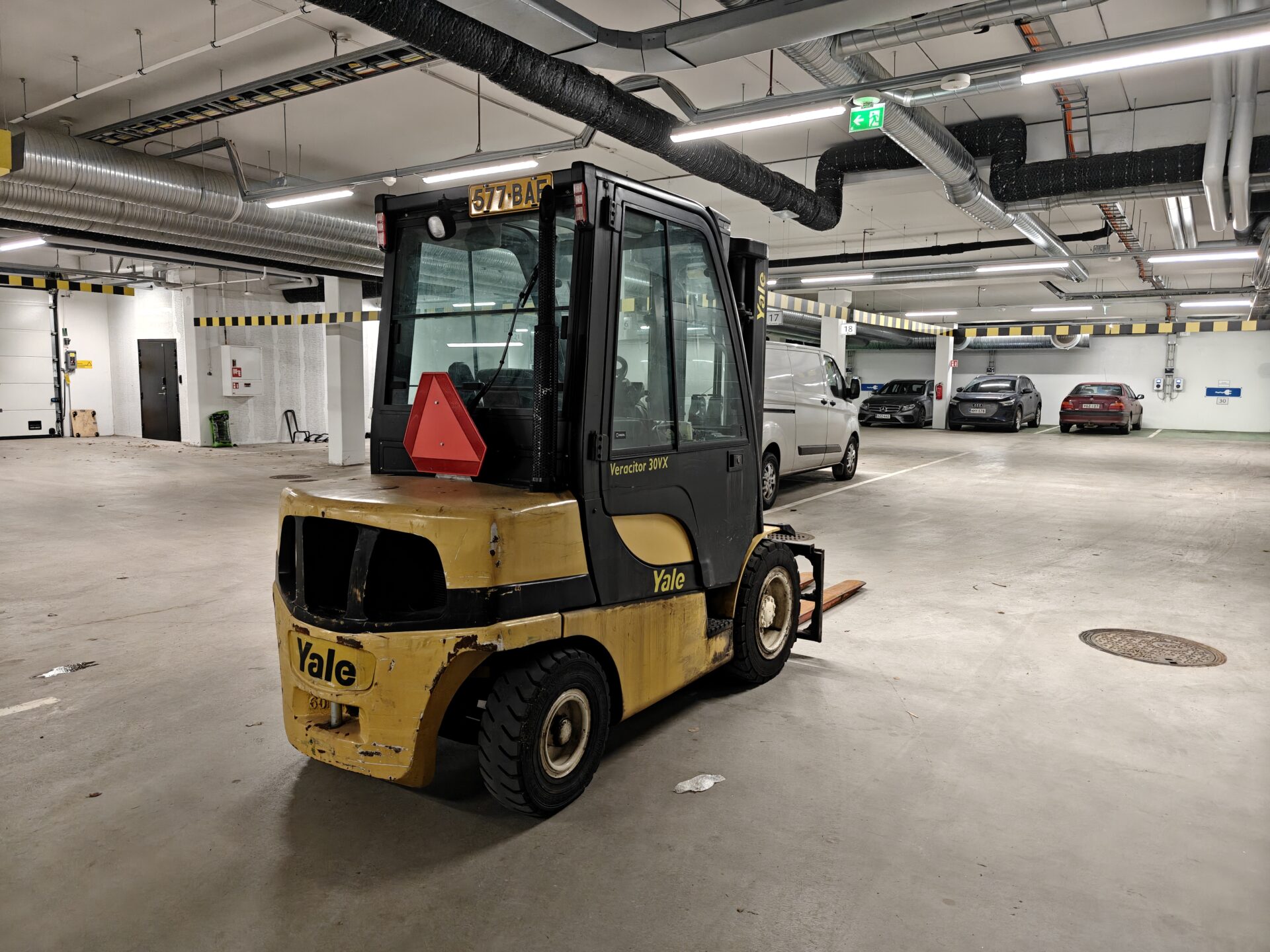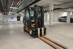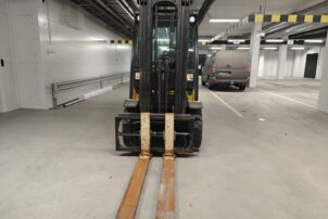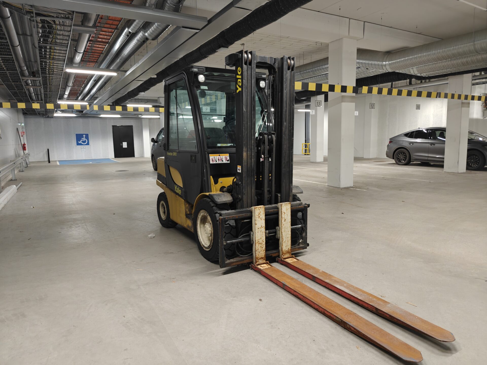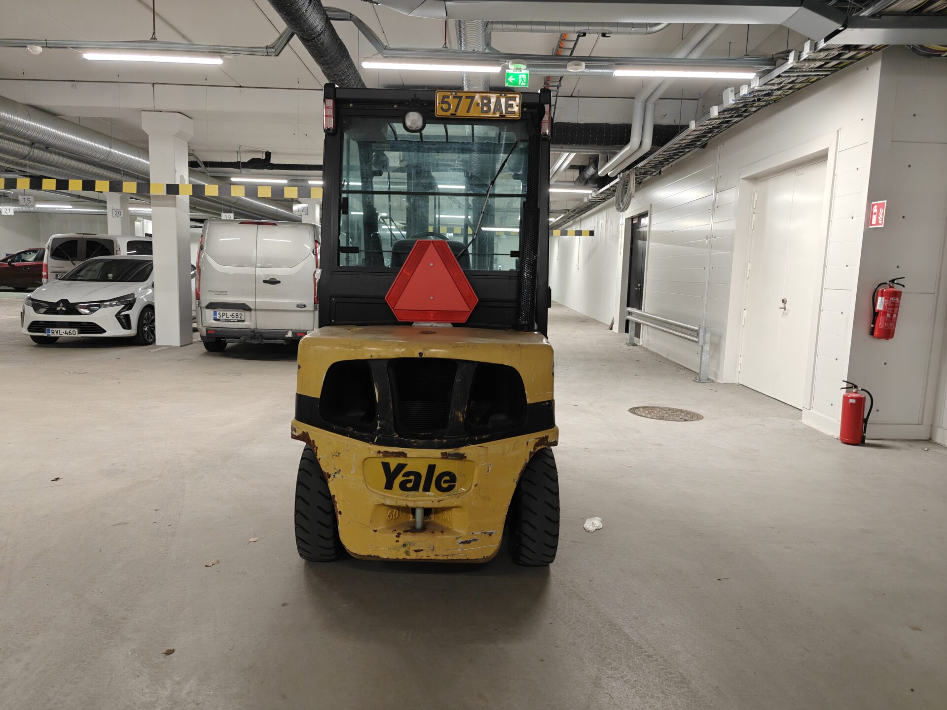 Todella pienillä tunneilla oleva ja juuri huollettu Yalen dieseltrukki.