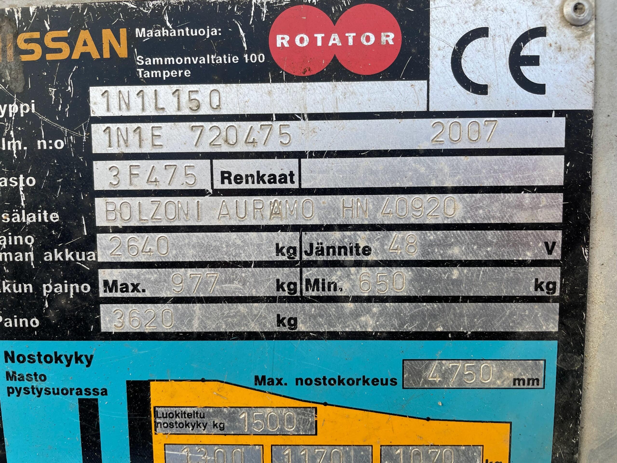 Luokiteltu nostokyky 1500 kg