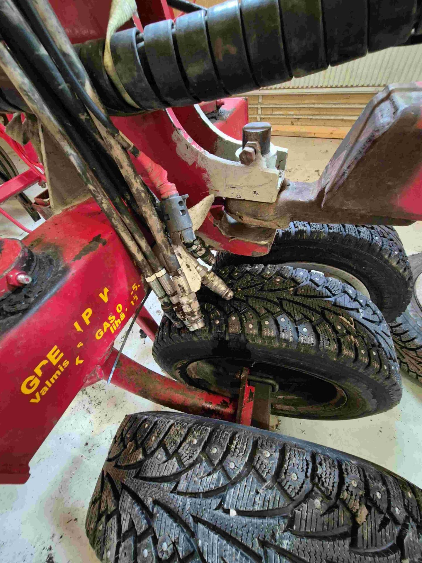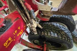 Pyöränväli pakkerin pyörä irti,kiinnitetään ennen luovutusta.