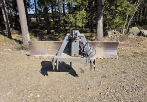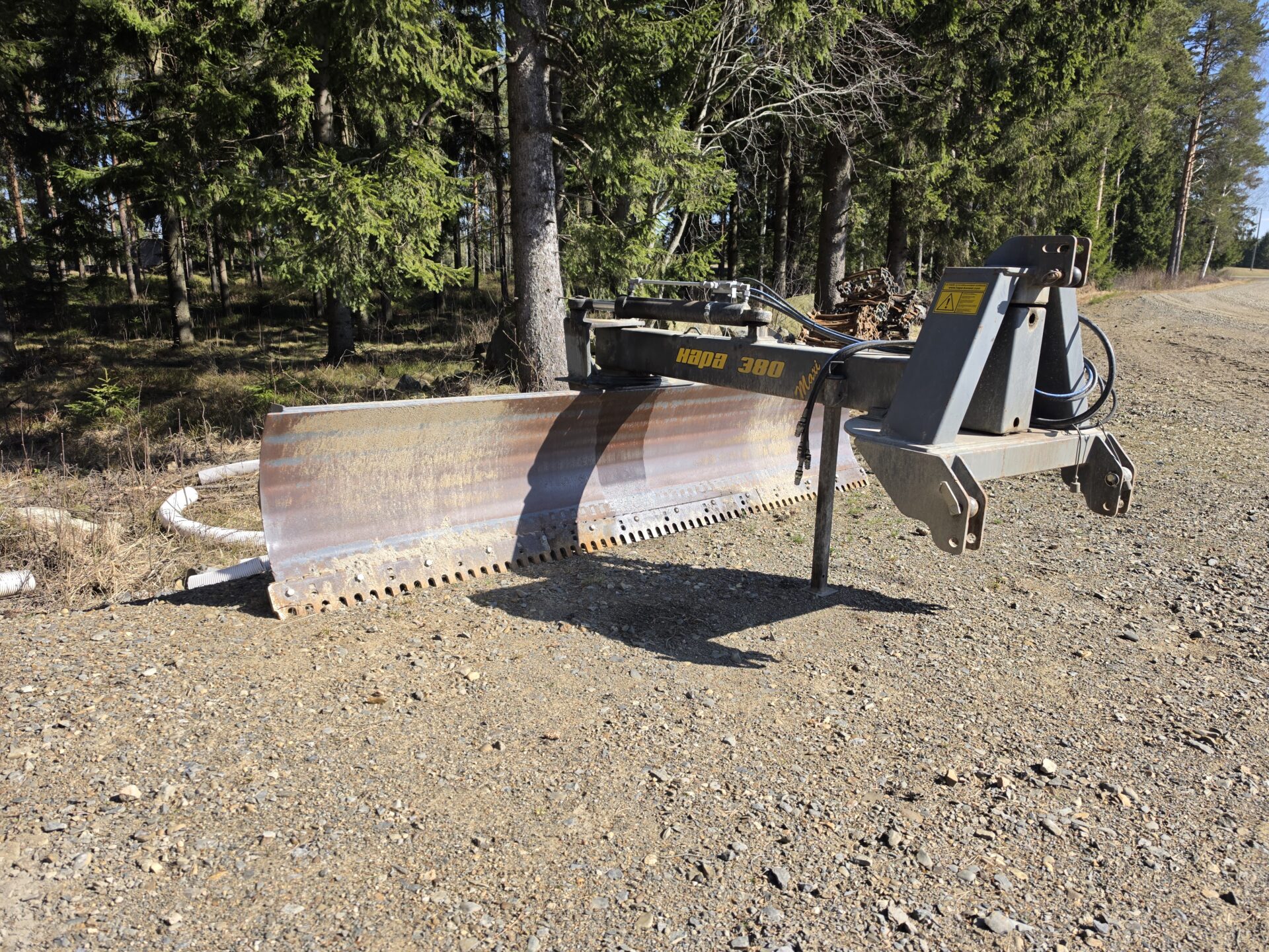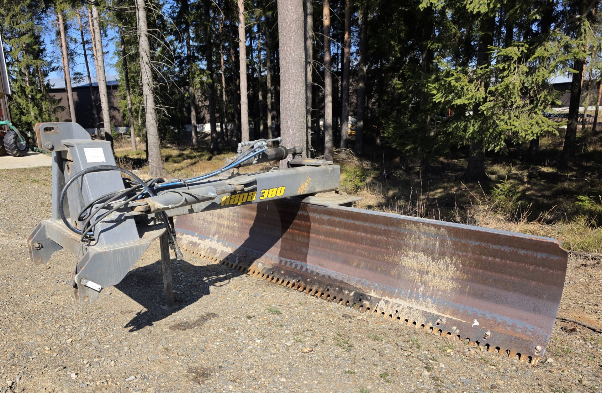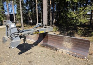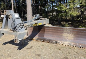 Hyvillä varusteilla oleva leveä perälevy hydraulisella käännöllä ja sivusiirrolla. Heikot paikat löydetty ja vahvistettu. "Puolikasterä" jäljellä. Tässä lanaa vielä pitkäksi aikaa!