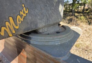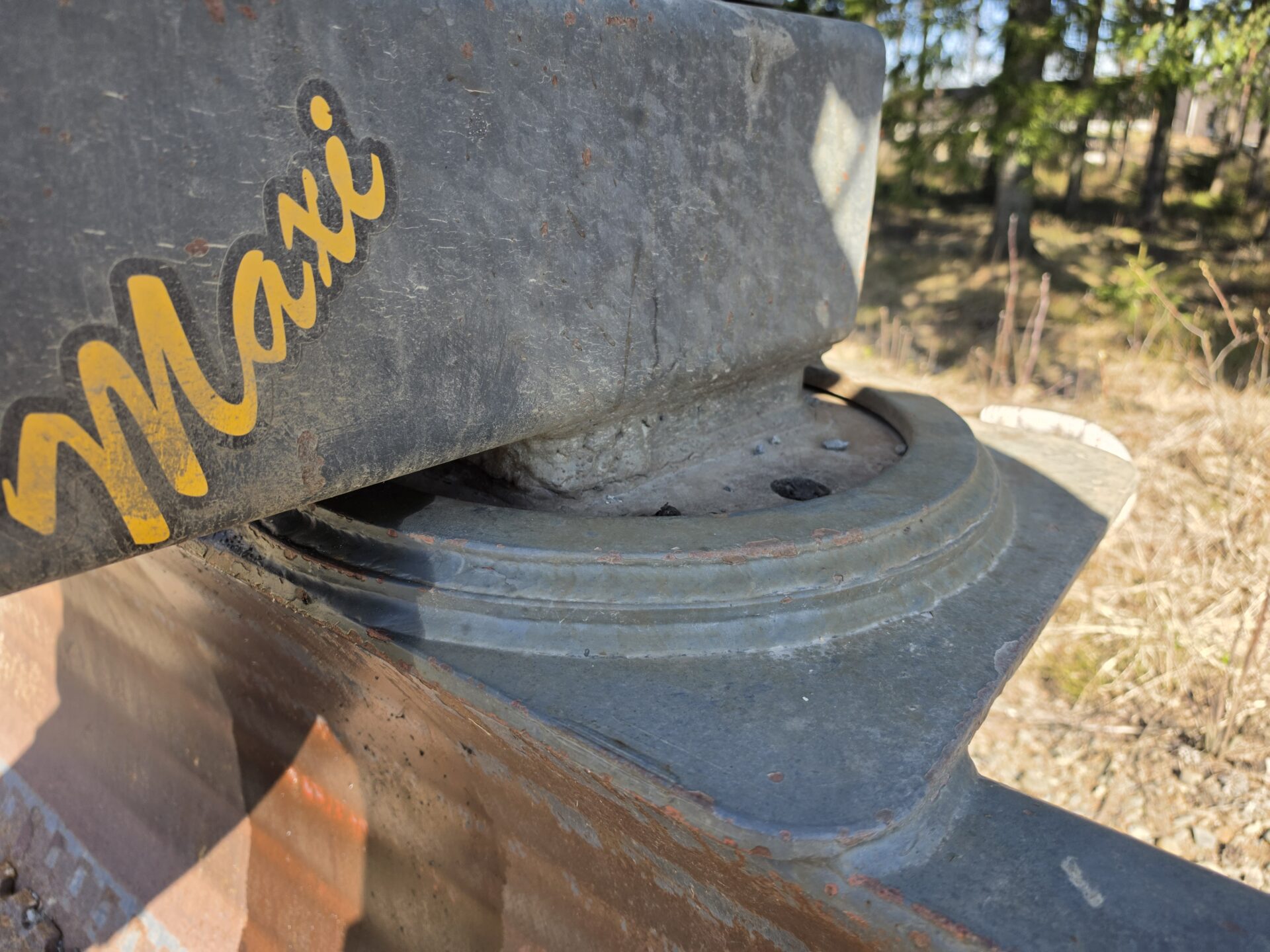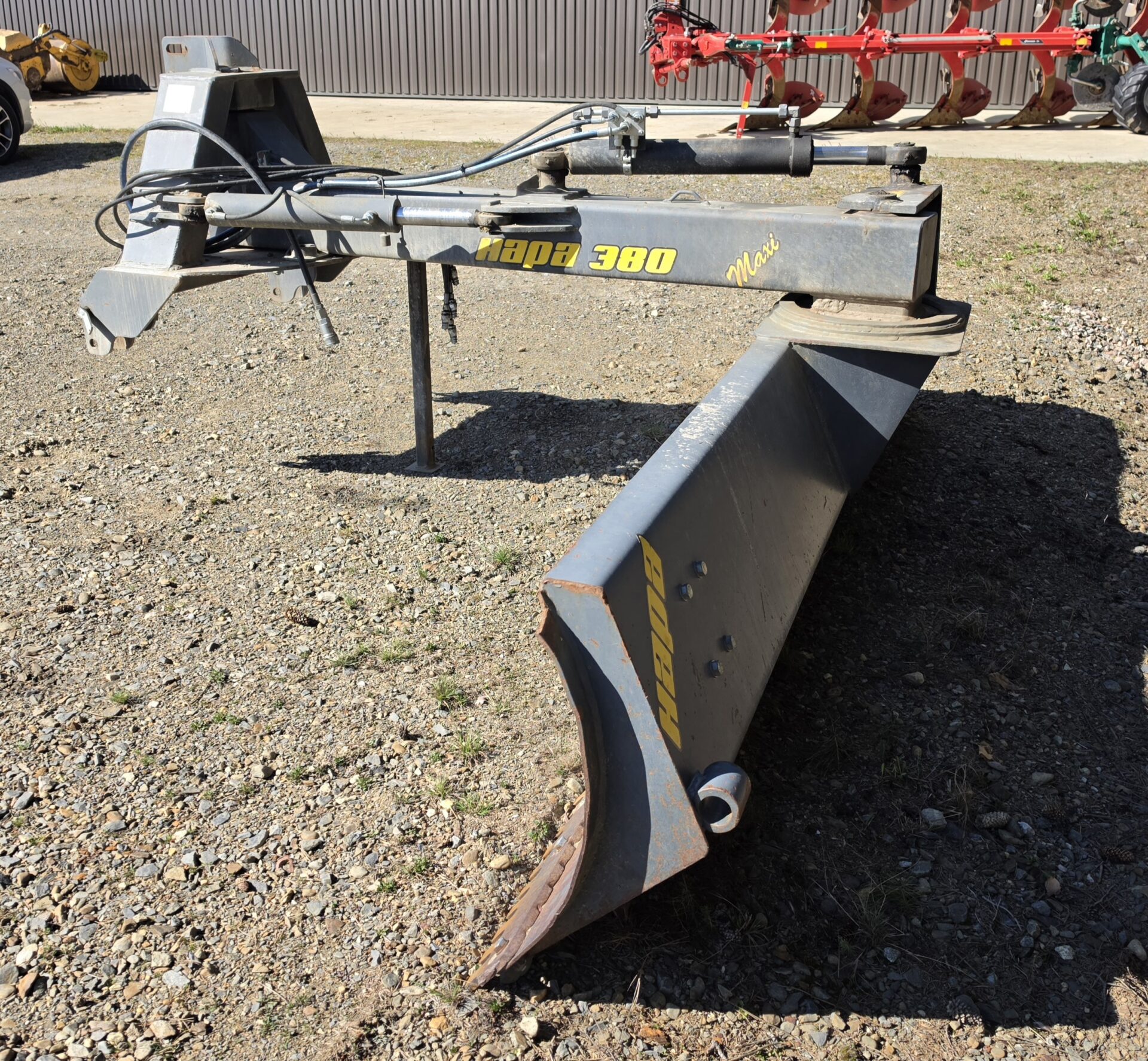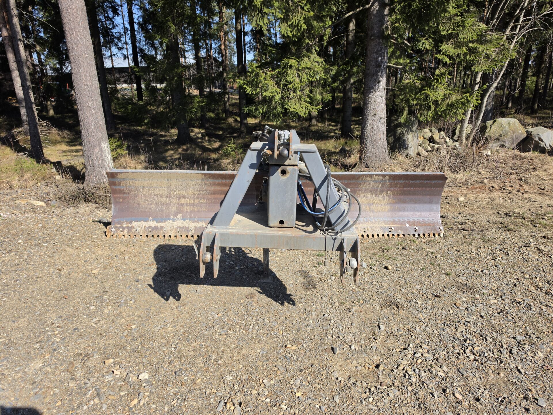 Hyvillä varusteilla oleva leveä perälevy hydraulisella käännöllä ja sivusiirrolla. Heikot paikat löydetty ja vahvistettu. "Puolikasterä" jäljellä. Tässä lanaa vielä pitkäksi aikaa!