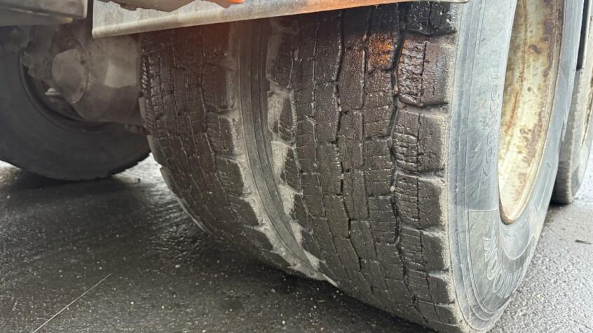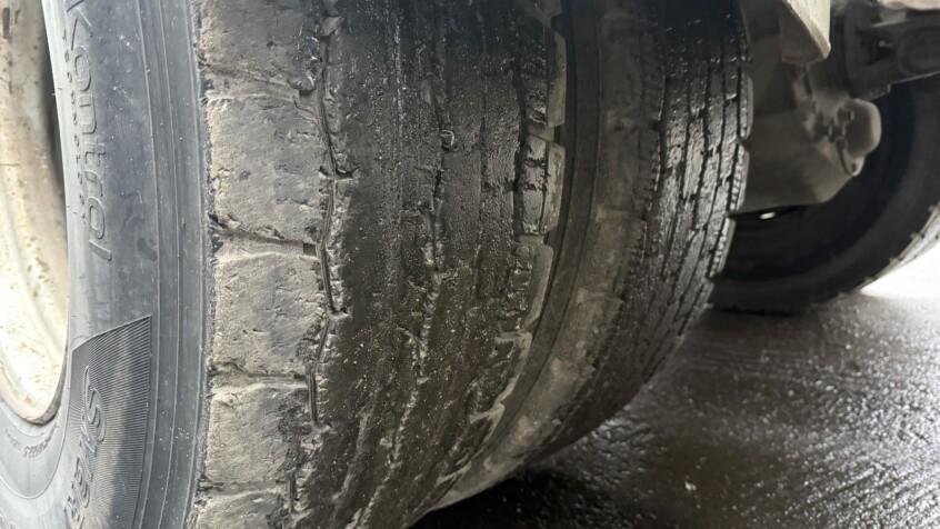 Hyvä rengastus. Eturenkaat kuluneemmat, telillä hyvät.