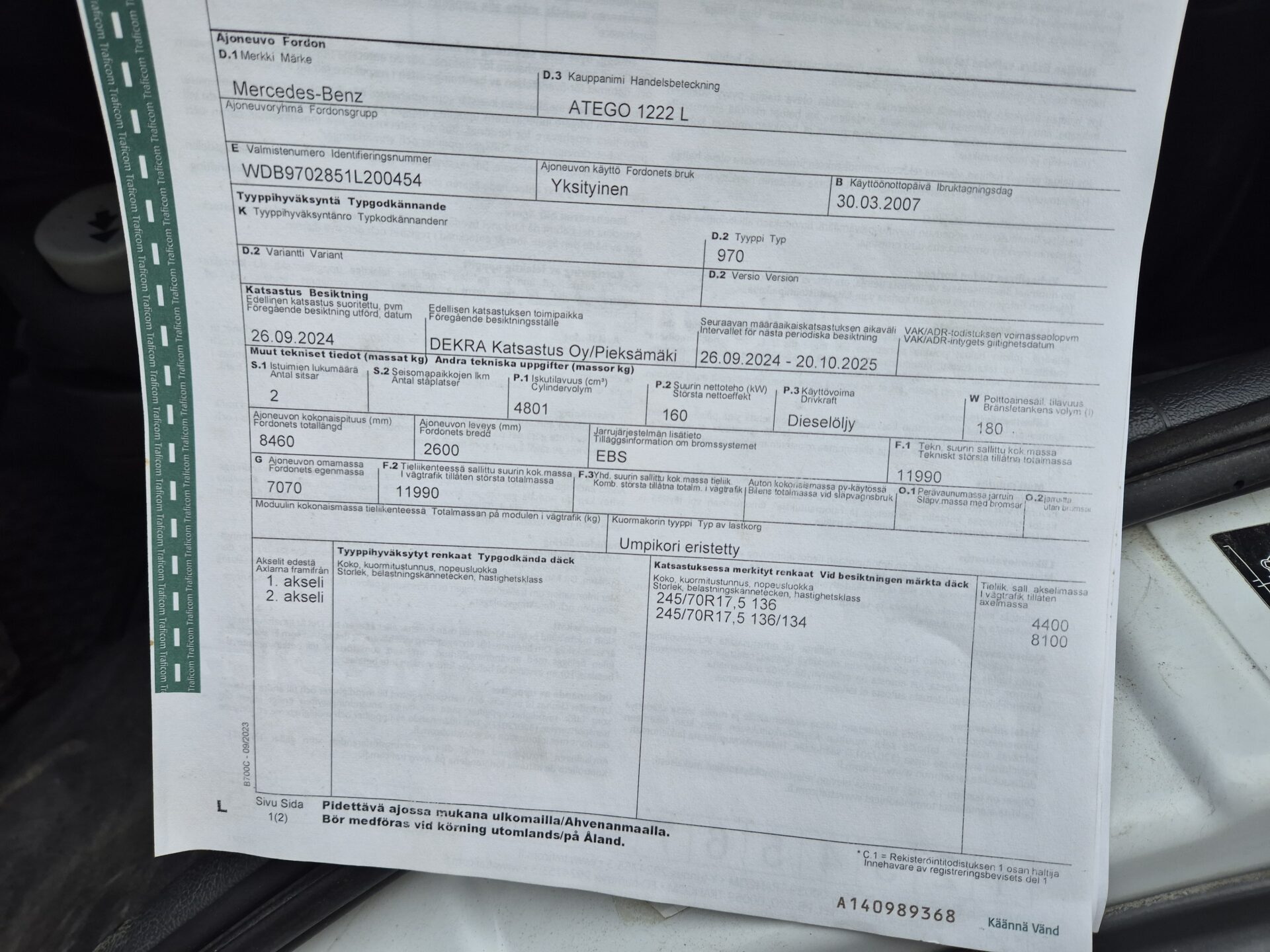 Muu teaveMercedes-Benz Atego 1222L