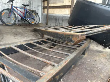 Perävaunuun kuuluu laidat, kapellit ja ajorampit. Pressu puuttuu.