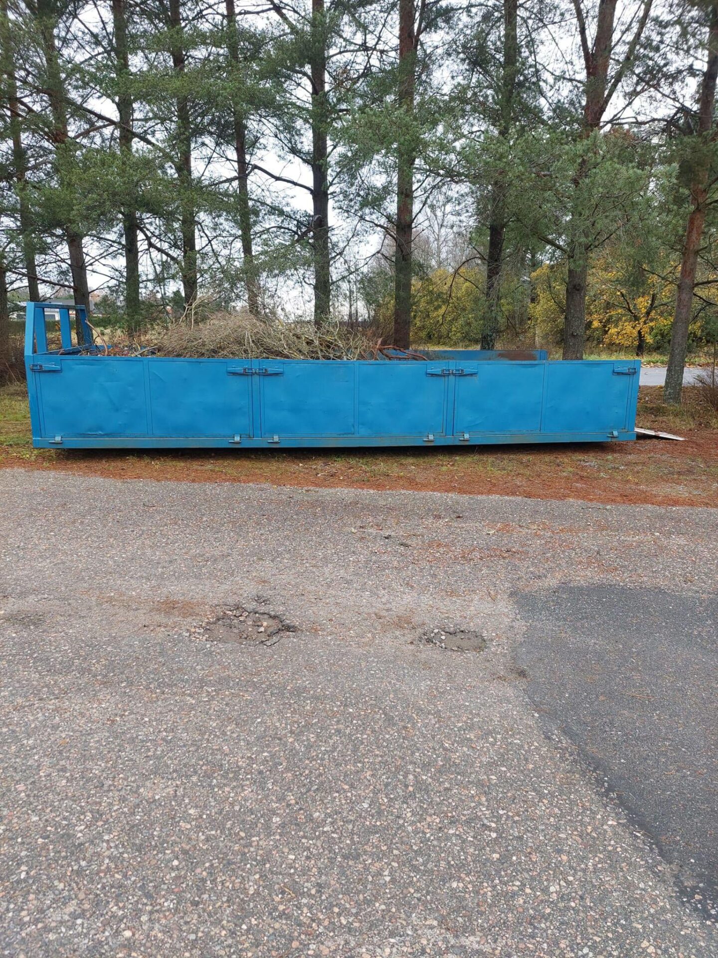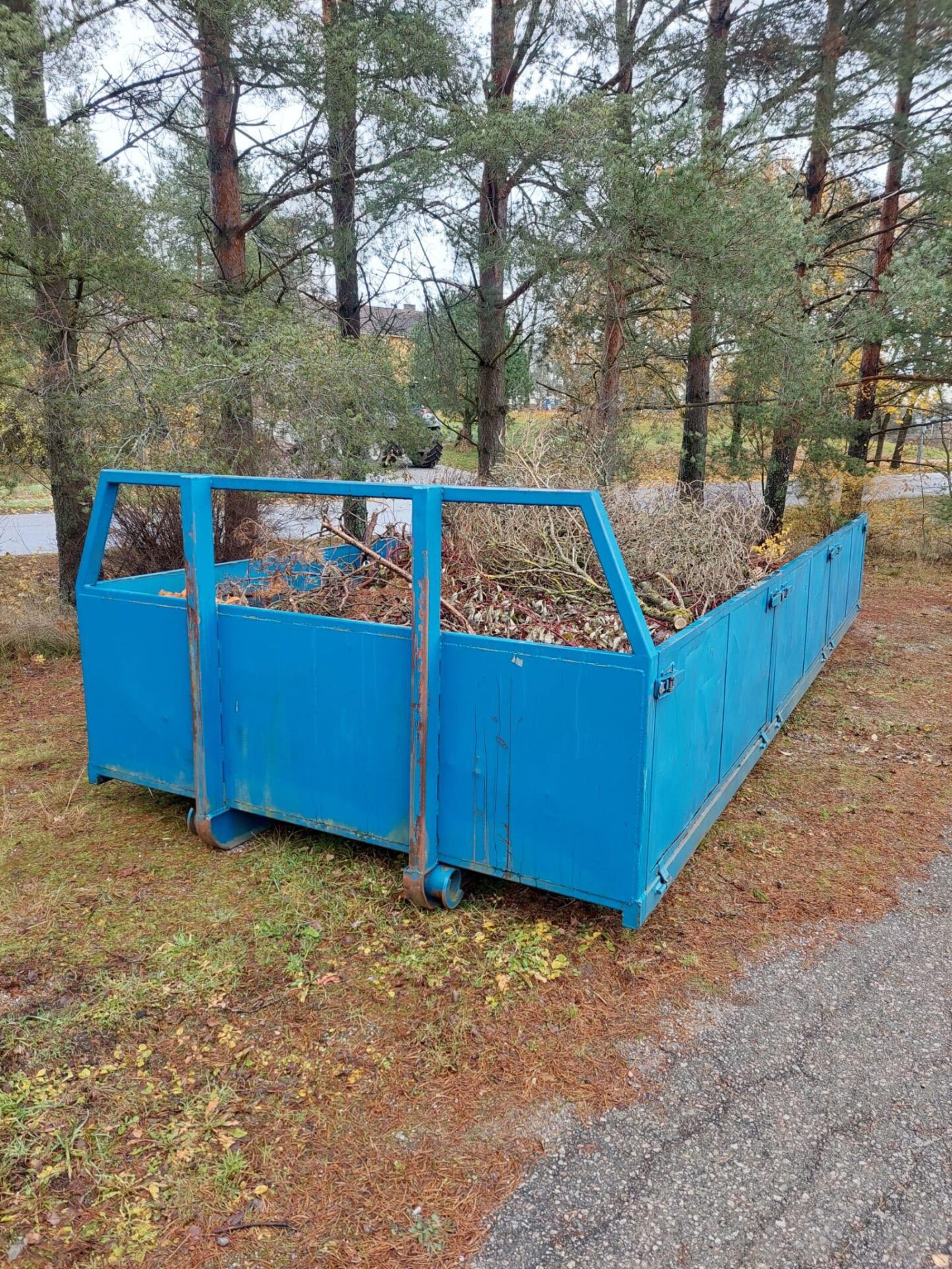 Sininen rahtilava vanerilaidoilla